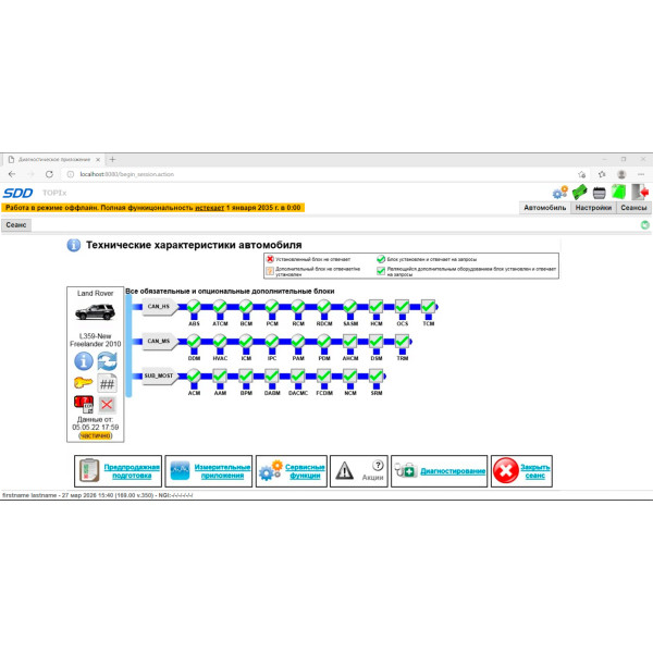 - Онлайн функции (TOPIx, SSO, новые калибровки) недоступны