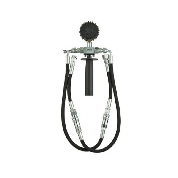 Пристрій дозволяє проводити перевірку без демонтажу агрегатів, що значно спрощує процес діагностики. Оцінка стану системи здійснюється за показниками манометра під час роботи насоса з навантаженням і без нього.