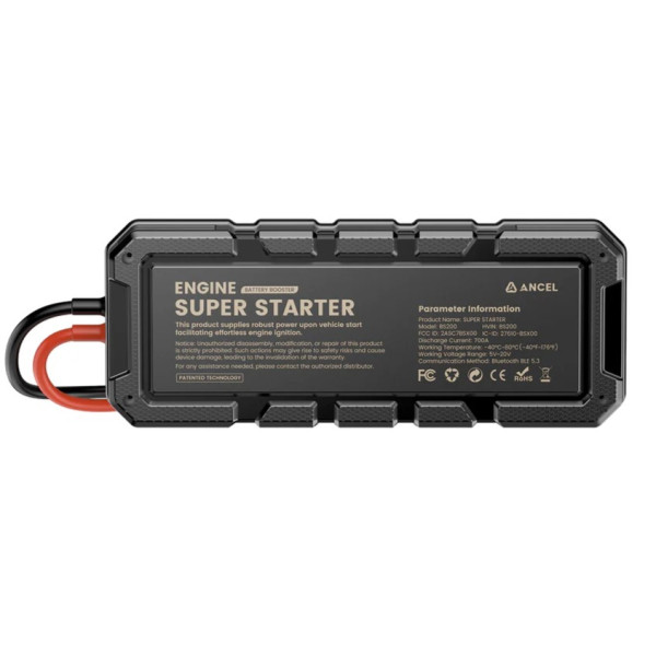 ANCEL BS200 — це стаціонарний суперконденсаторний модуль, який підключається безпосередньо до акумулятора автомобіля та автоматично допомагає під час кожного запуску двигуна. Пристрій не потребує ручного обслуговування або регулярної зарядки та працює як допоміжна система у штатному режимі.