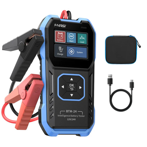 FNIRSI BTM-24 — портативний тестер акумуляторних батарей, розрахований на діагностику електросистем із напругою 12 В та 24 В. Пристрій використовується для комплексної перевірки стану акумулятора, запуску двигуна та роботи системи заряджання.