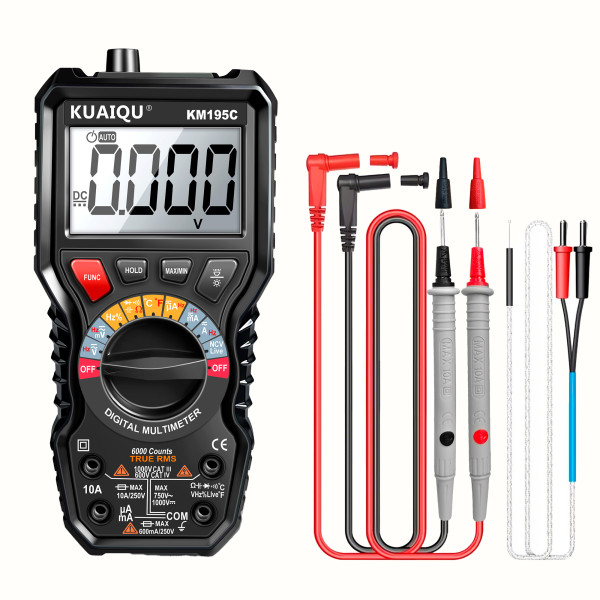 KUAIQU KM195C — це цифровий мультиметр з підтримкою True-RMS, призначений для вимірювання електричних параметрів у різних умовах. Пристрій підходить для сервісних робіт, лабораторного використання та технічного обслуговування обладнання.